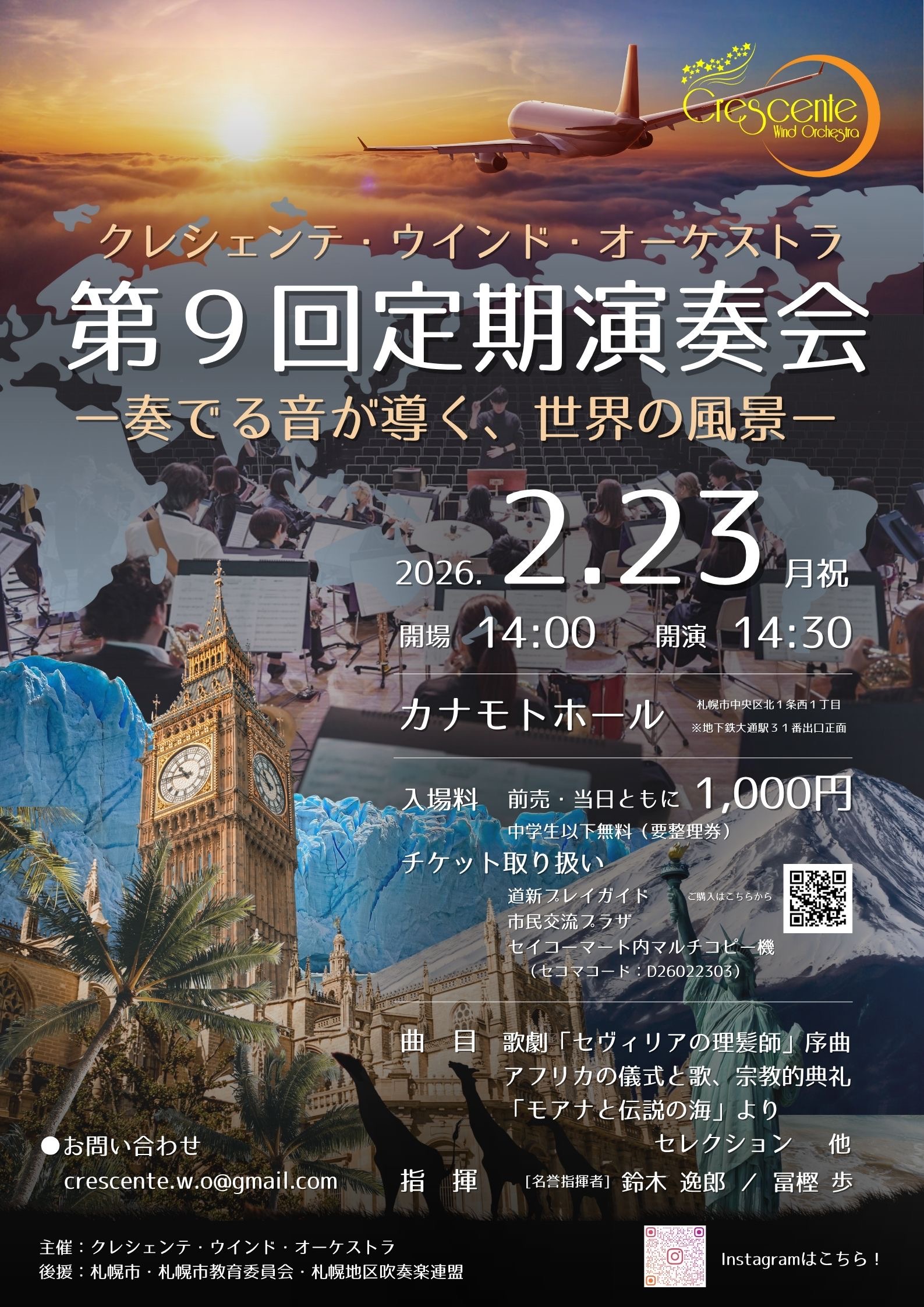 2026年1月23日 / 最終更新日時 : 2026年2月25日 s-suiren 5.未分類 【後援】クレシェンテ・ウインド・オーケストラ第9回定期演奏会 日時:2026年2月23日(月・祝)開場14:00 開演14:30 場所:カナモトホール 入場料:1,000円/中学生以下無料(要整理券) お問い合わせ先:crescente.w.o@gmail.com 2026定演ポスターダウンロード \ 最新情報をチェック /